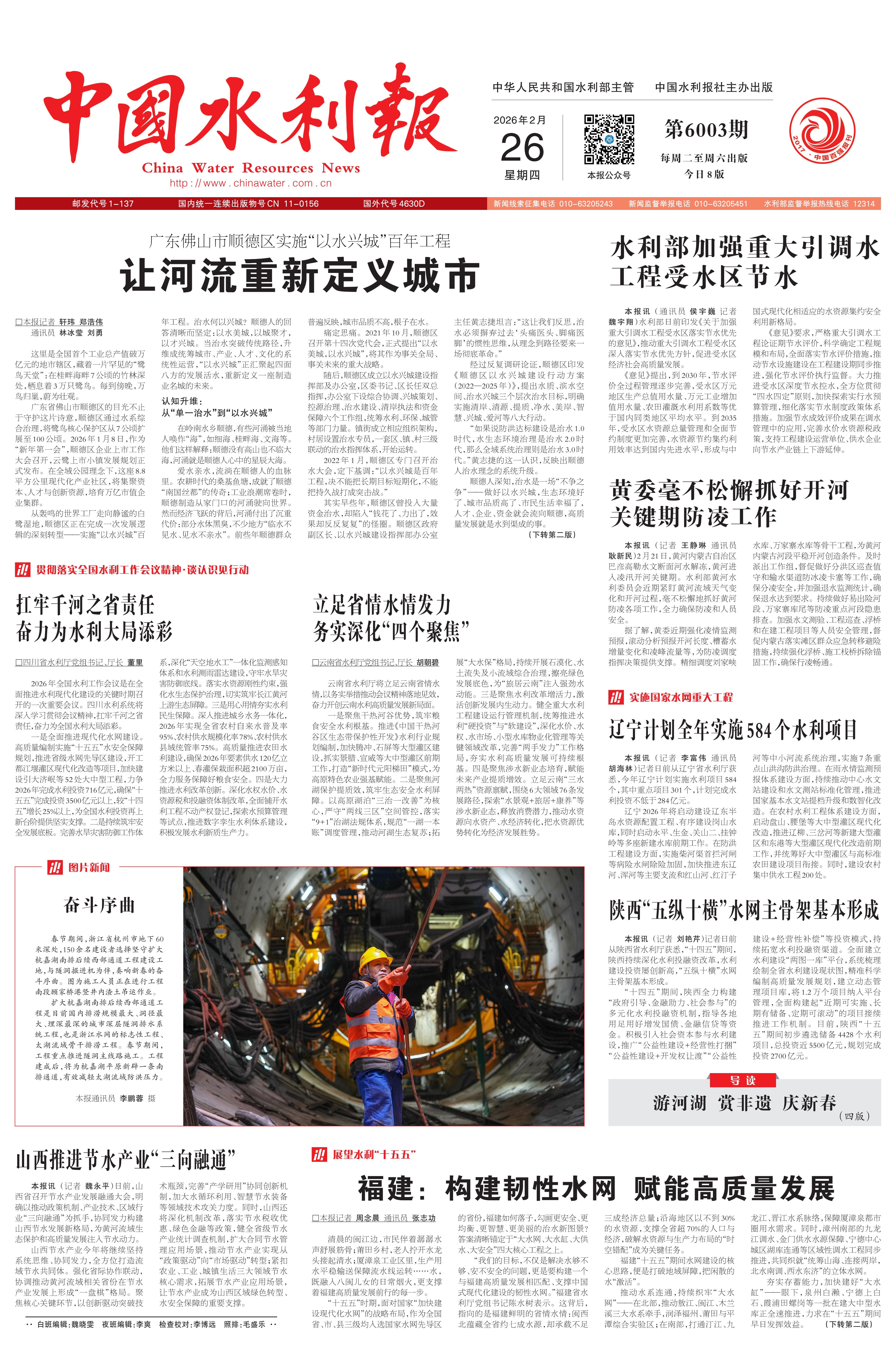 2026年全国水利工作会议是在全面推进水利现代化建设的关键时期召开的一次重要会议。四川水利系统将深入学习贯彻会议精神,扛牢千河之省责任,奋力为全国水利大局添彩。