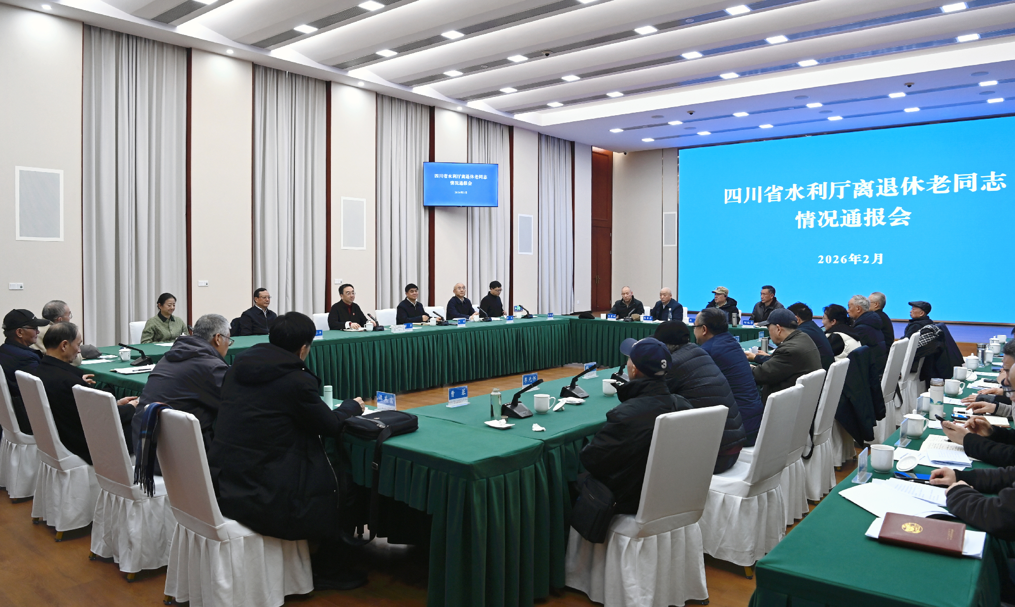 水利厅党组成员、副厅长、一级巡视员刘辉通报了2025年及“十四五”四川水利发展成效与2026年重点工作安排。厅党组成员,离退休老同志代表,厅机关有关处室及直属单位主要负责同志参加会议。