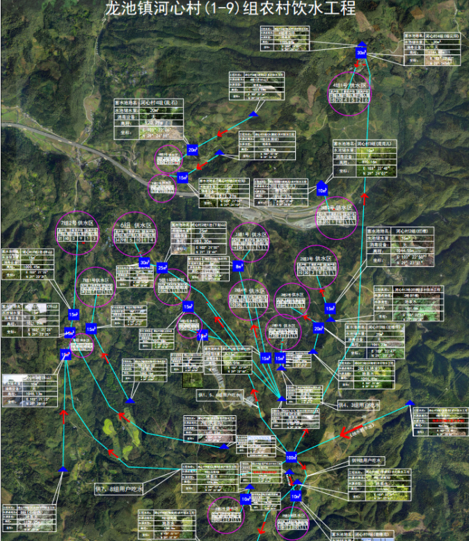 坚持精准测绘,以全盘摸底夯实规划根基。投入近20万元,派出骨干技术人员会同测量单位、镇村干部历时近两个月对县域内所有农村饮水工程进行全覆盖、系统化精准摸排测量,将工程名称、供水人口、供区范围、取水口、蓄水池、消毒与水费收费方式等信息精准上图,形成了峨眉山市农村饮水工程现状图,全面厘清了设施现状、薄弱环节与潜在需求,为科学决策奠定了坚实基础。以此为依据,科学编制了《农村供水三年实施方案》,系统绘制了未来三年的供水发展蓝图。该规划明确了奋斗目标、重点任务和实施路径,这一举措实现了从被动“项目思维”到主动“系统规划”的关键转变,为全市供水基础设施的统筹布局、有序建设与高效管理提供了可靠指南。