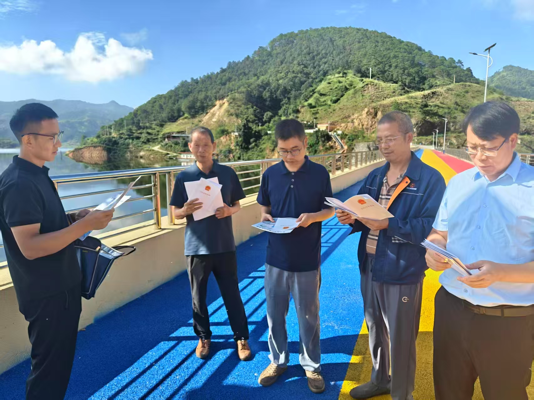 一是开展水文设施运行情况检查。重点排查水文测站中水位、雨量、流量监测设施设备是否完好、是否受到周边环境和工程建设威胁,水文监测网络数据传输是否及时、准确,备用电源是否正常等。针对检查过程中发现的问题,坚持“问题导向、立行立改”原则,第一时间将相关问题详情、整改要求反馈至对应的管理单位进行整改,确保各类水文设施良好运行,全力保障安全度汛。二是开展节水宣传。聚焦“增强全民节水意识,共建节水型社会”核心目标,在办公区域、水库周边发放宣传资料等形式,向水库工作人员、周边群众普及节水知识与相关法规,共发放《节约用水条例》《公民节约用水行为》等宣传资料50余份,内容涵盖节约用水的重要意义、日常节水小技巧、相关法律法规条款等,引导群众树立节水观念,营造“人人关心节水、人人参与节水”的浓厚社会氛围。