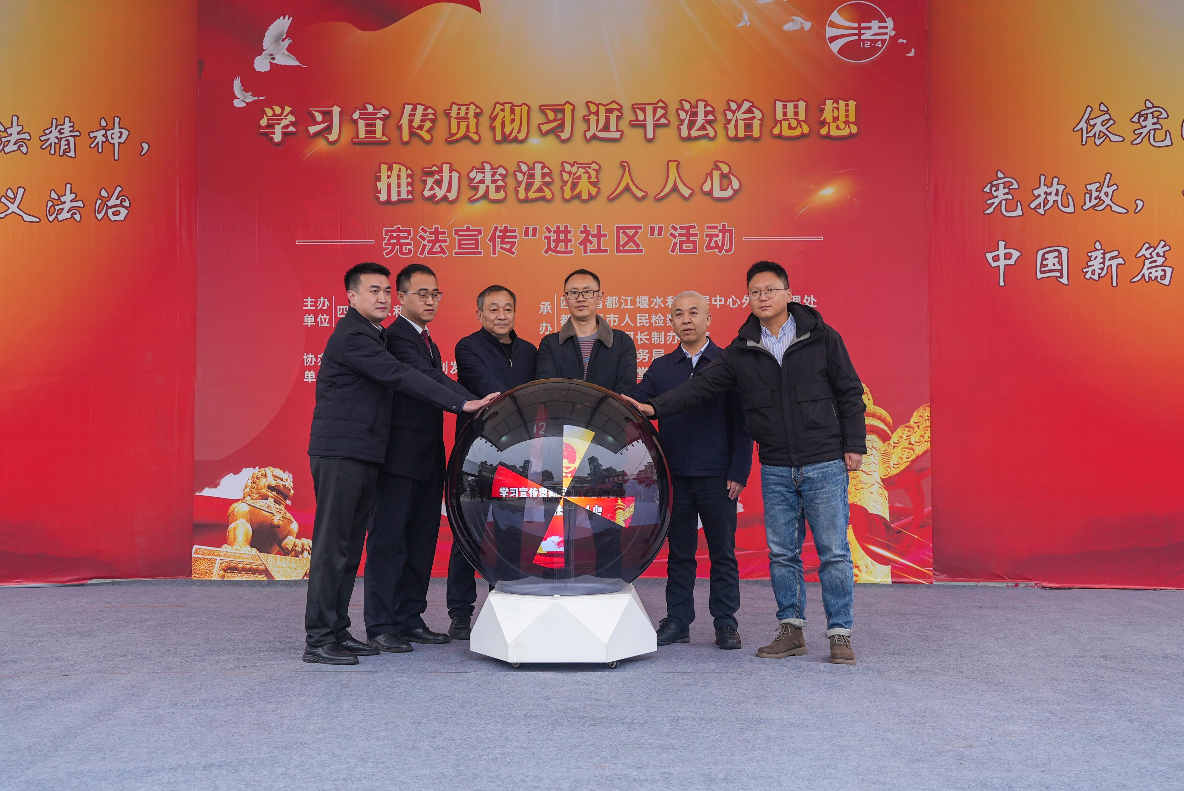 12月9日,由四川省水利厅主办,省都江堰水利发展中心协办、外江管理处承办,联合都江堰市检察院、水务局、河长办、玉堂街道办等地方政府部门参与,主题为“学习宣传贯彻习近平法治思想,推动宪法深入人心”的2025年宪法宣传进社区活动在都江堰市玉堂街道举行。