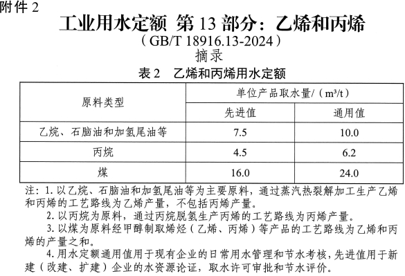 2.《工业用水定额第13部分:乙烯和丙烯》(GB/T18916.13-2024)摘录