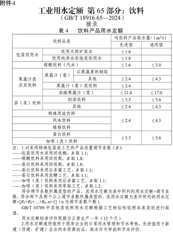 4.《工业用水定额第65部分:饮料》(GB/T18916.65-2024)摘录