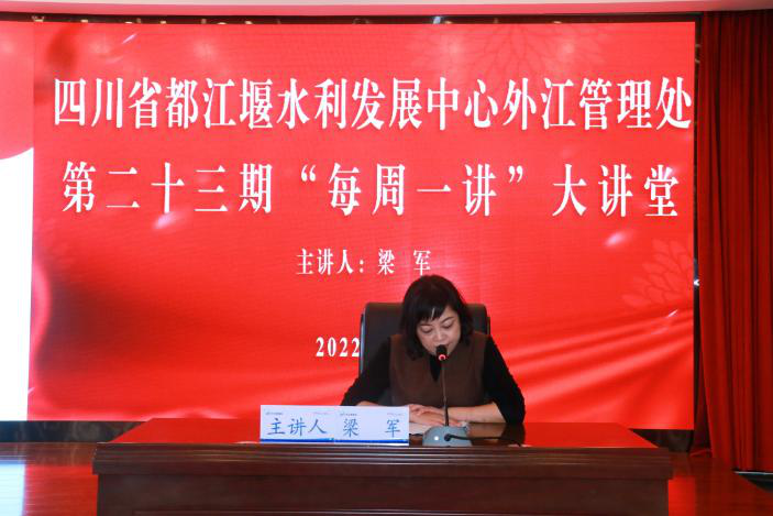 在中国共产党第二十次全国代表大会即将召开之际,本期的大讲堂更加充满了对干部职工的教育意义,让干部职工充分了解中国共产党百年历史长河中的“担当”“探索”“实践”“作为”,共同感受祖国翻天覆地的历史巨变。方寸之间,祖国山河壮丽,百年风雨,我党砥砺前行。回首征程,风卷红旗如画;展望未来,时代奔腾向前。当下,四川水利时代的奋进号角激荡人心,再出发的壮阔航程风鹏正举,让我们更加紧密地团结在以习近平同志为核心的党中央周围,踔厉奋发、勇毅前行,为四川水利高质量发展贡献外江力量,以实际行动迎接党的二十大胜利召开!