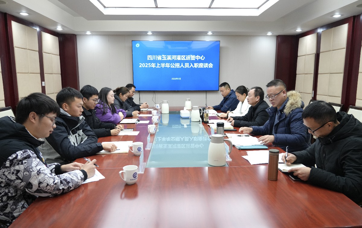 2026年1月5日,四川省玉溪河灌区运管中心(以下简称玉管中心)召开2025年上半年公招人员入职座谈会,欢迎6名新公招人员加入玉管中心大家庭。玉管中心党委书记、主任肖伟胜出席会议并讲话。