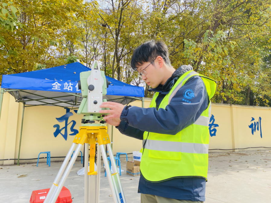 第二天至第三天的外业赛场,河风习习、烈日灼灼,缆道测流、全站仪测量、GNSS卫星定位测量、雨量水位计安装调试、流速仪拆装、三等水准测量六大实操项目分批次有序开展,全面模拟水文监测一线复杂场景,检验选手应对野外环境的实操本领,呼应全会“强化水文监测预报预警的防灾减灾支撑”部署。