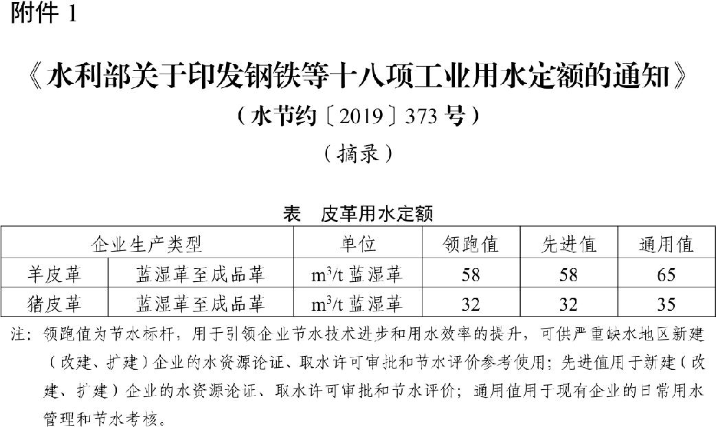 附件: 1. 《水利部关于印发钢铁等十八项工业用水定额的通知》(水节约〔2019〕373号)(摘录)