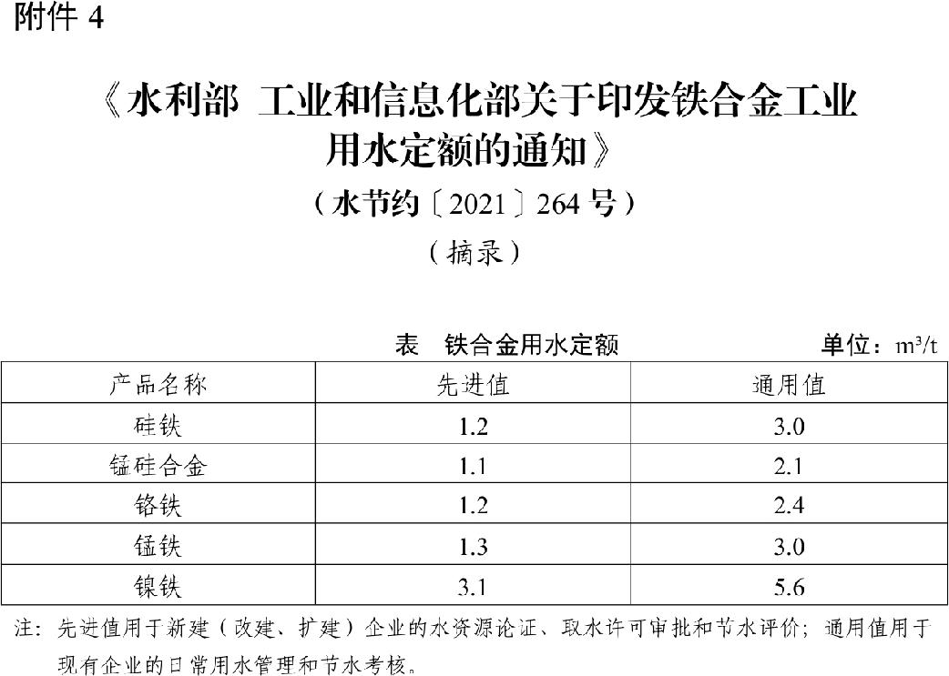 4. 《水利部 工业和信息化部关于印发铁合金工业用水定额的通知》(水节约〔2021〕264号)(摘录)
