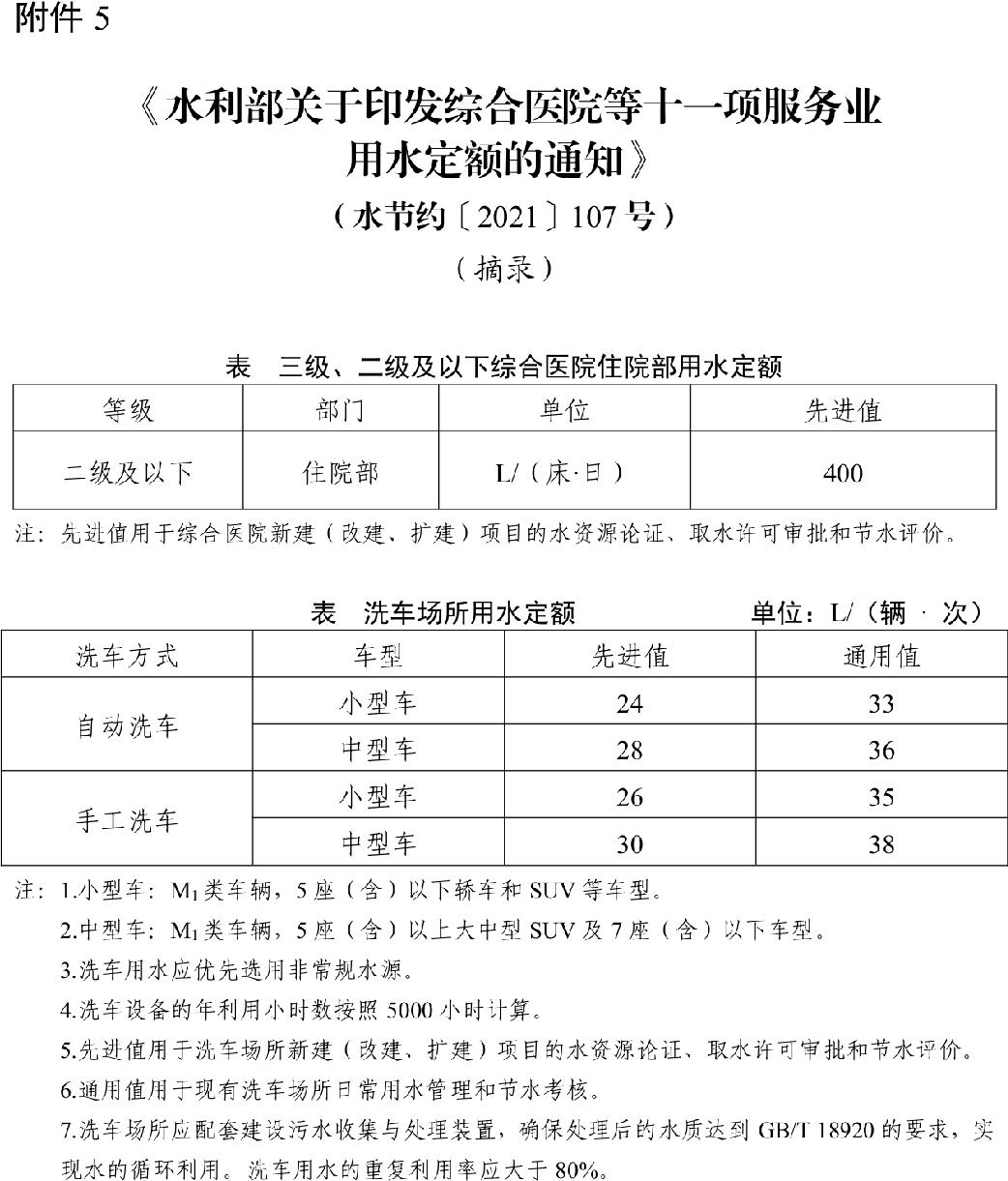 5. 《水利部关于印发综合医院等十一项服务业用水定额的通知》(水节约〔2021〕107号)(摘录)