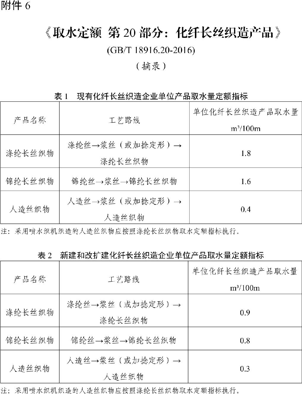 6. 《取水定额第20部分:化纤长丝织造产品》(GB/T18916. 20-2016)(摘录)
