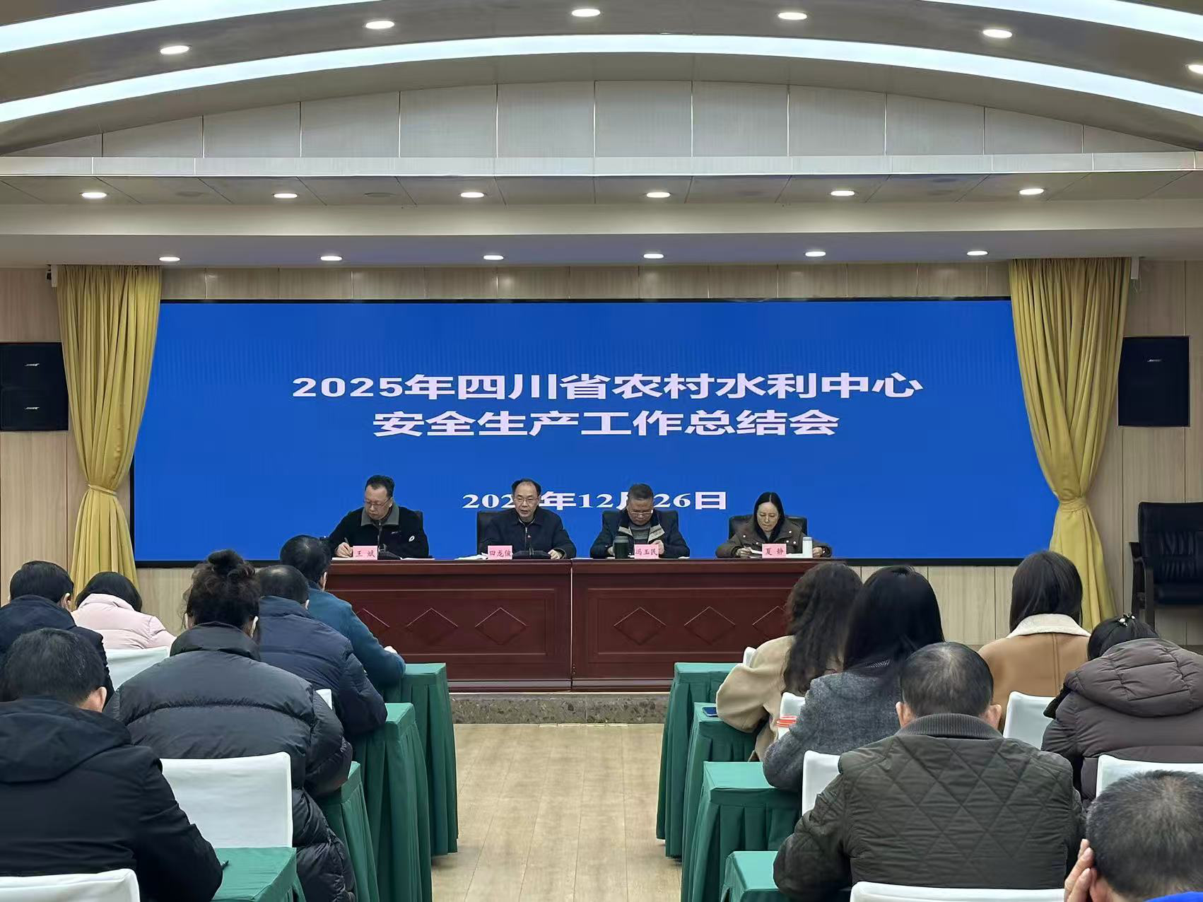 12月26日,四川省农村水利中心召开2025年安全生产工作总结会,深入贯彻习近平总书记关于安全生产的重要指示批示精神,落实水利部、省安办、水利厅和董里厅长关于农村水利安全生产相关文件精神及工作要求,总结成效、分析问题、部署任务。中心党委书记、主任田龙俊出席会议并讲话,中心班子成员、全体干部职工参加会议。